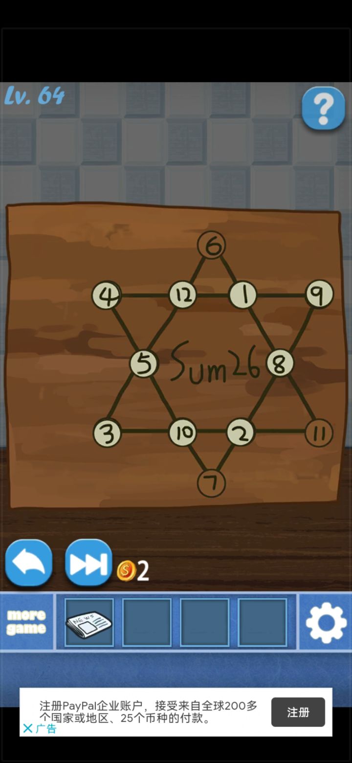 64关 这应该也是个正确答案吧🤔如果我没加错的话 加上之前大佬反馈的 把答案弄全一点呗~