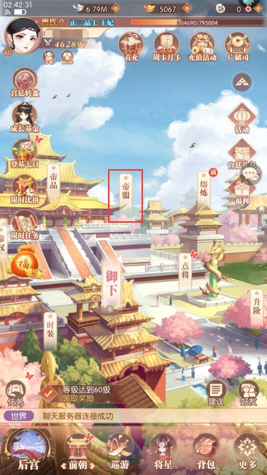 老话常说,独木不成林,殿下可前往帝盟寻找与自己志同道合的伙伴~一、帝盟点击进入【帝盟】后,需要进行阵营选择。阵营分为【武帝】与【文帝】两类,进入阵营后方能加入帝盟。,殿下可以选择合适的一方加入,也可以选择【顺天意】随机加入阵营。殿下加入帝盟之后,可以通过完成【帝盟任务】等途径换取【帝盟贡献】,【帝盟贡献】可以在【广储司】内购买货品。点击【帝盟任务】,进入任务页面。殿下可以在次此处接取【帝
