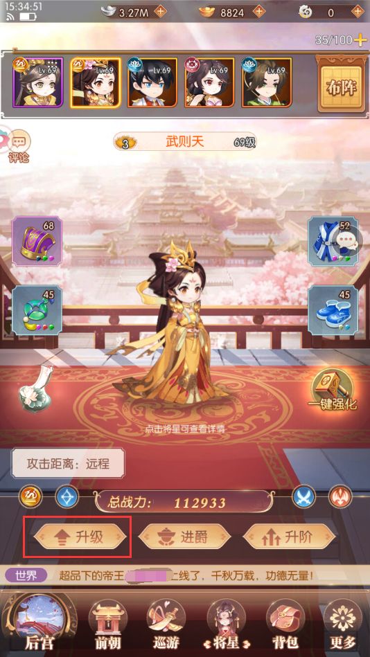 灵儿又来啦,上一回和殿下讲了将星的品质,将星的获取和排兵布阵的方法,以殿下的聪明才智应当都记住了吧!今天灵儿准备给殿下讲讲将星的进一步养成,殿下听好了哦~一、将星的升级将星们跟随殿下后,只要殿下愿意培养他们,他们就会变得越来越厉害,也能更好地帮助殿下。灵儿觉得最简单的培养办法便是【升级】将星等级。在【将星】页面,选择您想升级的将星,点击【升级】,就会跳转到升级页面,升级需要消耗一定数量的【经
