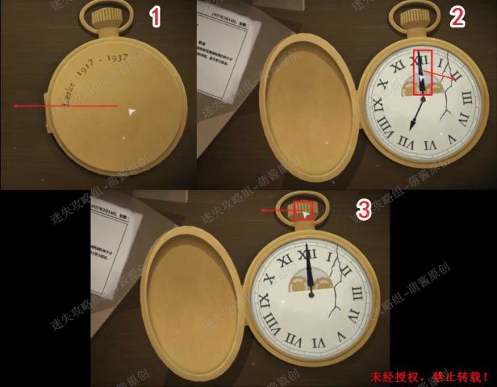 首先进入游戏,两个玩家分别选择玩家一和玩家二。进入页面后,显示的是玩游戏当天的日期,以及艾美丽给玩家的一段话。向下滑动,会出现半份报纸和一块怀表。玩家一:得知时间在十点半玩家二:得知在一个半小时后打开怀表,将时间调到12:00,随即转动发条,进入游戏。第一章时间变成1927年,钟表时间显示12:00向左滑动,是一栋别墅,点击,进入。玩家一:进入房间后,先开灯,然后在转轮子,就会获得完整的提
