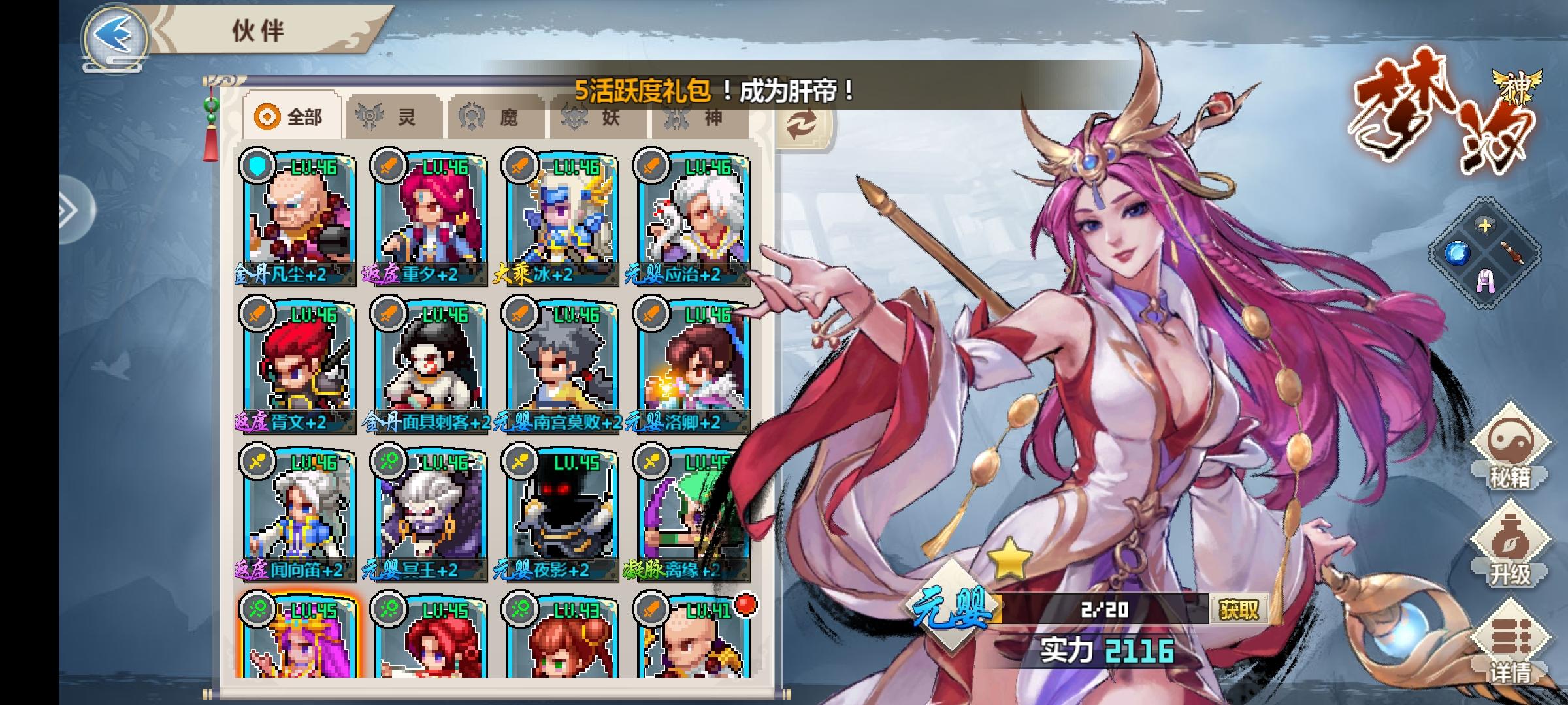 稀有伙伴获取:洛卿每天白嫖26VIP经验买VIP礼包升星,名,冰,林泽和月念烟每天打强盗开天阶财宝箱,冥王,夜影和应诗晴每天打强盗开地阶财宝箱,神珠阁也可以换冰或夜影。皇甫乘月和雷元浩等大活动白嫖或氪金,阿鬼冲榜活动得没有不用担心,坦克一个即可,平民凡尘够用,氪佬建议雷元浩。人仙觉醒包之前大活动甚至送了一个我直接给皇甫用了,所以说,玩得久啥都有