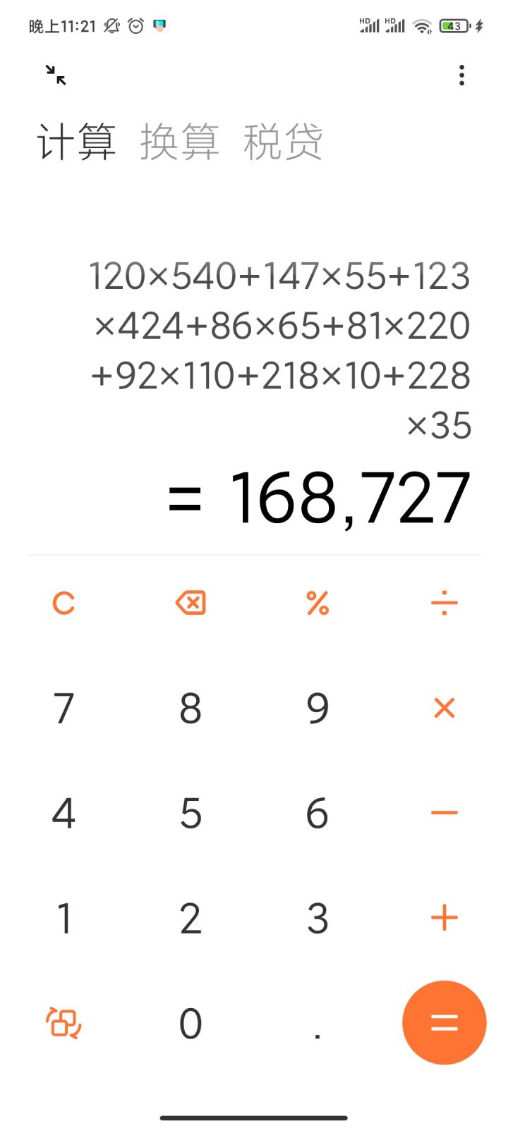 120×540+147×55+123×424+86×65+81×220+92×110+218×10+228×35=168727