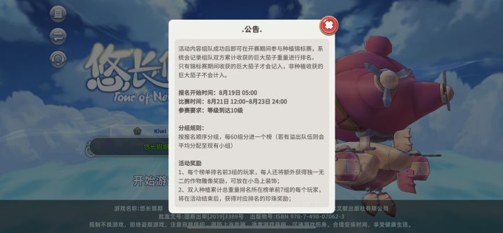 今天看到更新了茄子比赛 怕有些玩家没注意看规则就埋头肝比赛所以这里就把比赛机制给大家解读一下之后还有胡萝北🥕比赛、土豆🥔比赛等(看图鉴发现未来比赛类型不仅仅局限于作物)♪( ´θ`)ノ比赛公告帮大家划几个重点:1、等级大于10级可以报名组队,8月19日5:00到8月21日12:00之间都可以报名组队。2、报名之后在活动页面邀请好友组队,两人一组。(可邀请的只有当前在线的好友,上午好像有b