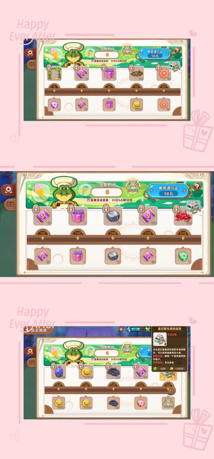 我来证明一下我还在,佛系养老玩家出没!今天终于等到更新了,不得不说,从岛主的作用到岛主的任务,一看就知道官方没走心,哈哈哈哈哈一、夏日餐车(500环境值+1个厨房格子)二、任务(和去年某一次的岛主只差了几个任务,绝绝子,直接复制粘贴啊,绝绝子)三、头像框更新(有两个扭蛋的呦)顺便说一下,还有一个鲜花累充送的,懂得都懂四、夏日祭衣服(原价,点击灯笼🏮白嫖一个棒冰)五、盲盒兑换(毽子可以