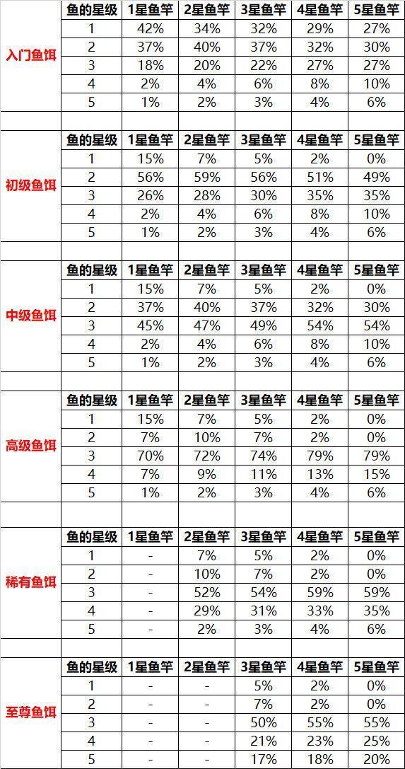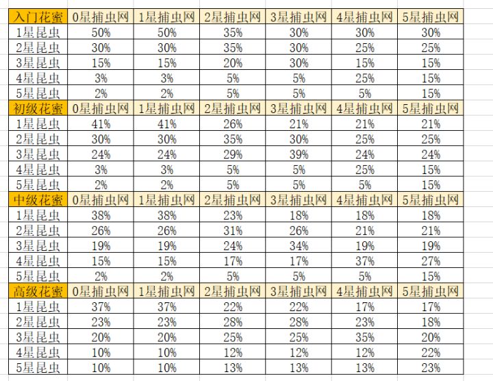 钓鱼,抓虫,摸贝概率表,数据取自妖念念大佬的帖子,重新整理了一下,存图收藏