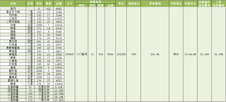 钓鱼收益测算汇总(五级鱼杆+星星鱼竿皮肤+大鱼套)