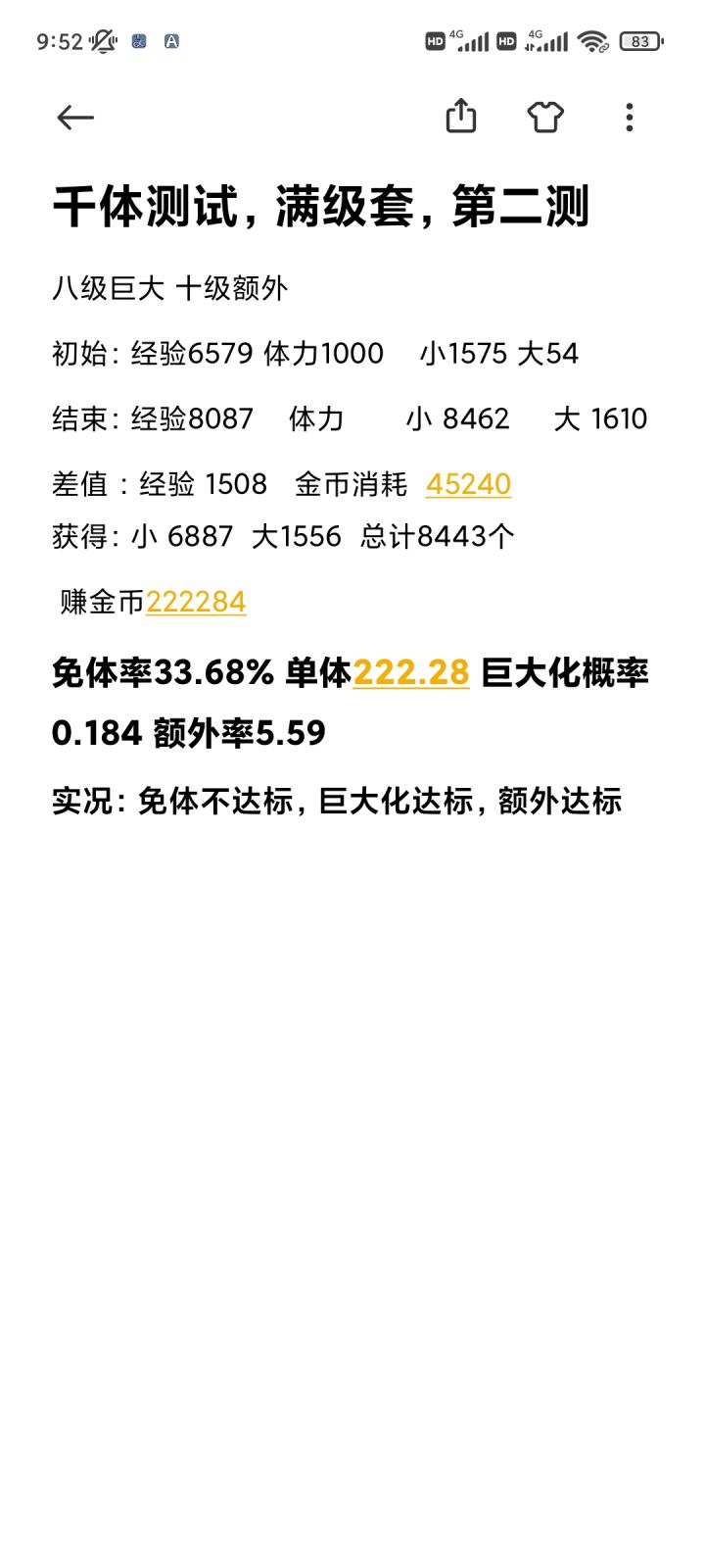 千体测评胡萝卜,后续会继续测评五次工具五镰刀,四锄头,农夫套,八级巨大 十级额外初始土地没种作物,最后土地清空作物,体力后面加的没算,总共一千体//////免体达不到0.38,三千体。严重怀疑农夫套免体被削弱了