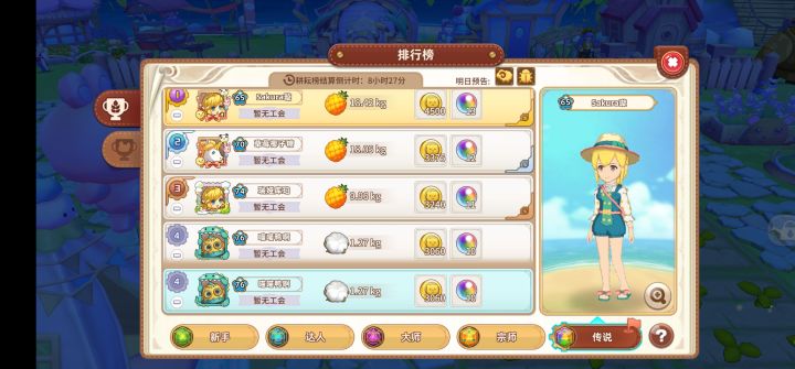 各种bug,耕耘榜今天刷新几次了三点半了你告诉我榜上只有四个人?我上午收了菠萝,中午看榜,我重量是0,排行榜起码人是满的,现在又刷新了?
