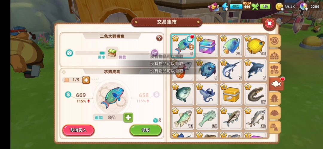 在集市求购了25个煤矿,一直领取不了,退出重新进也不管用,然后一直卡在那啦,尽快解决问题吧。