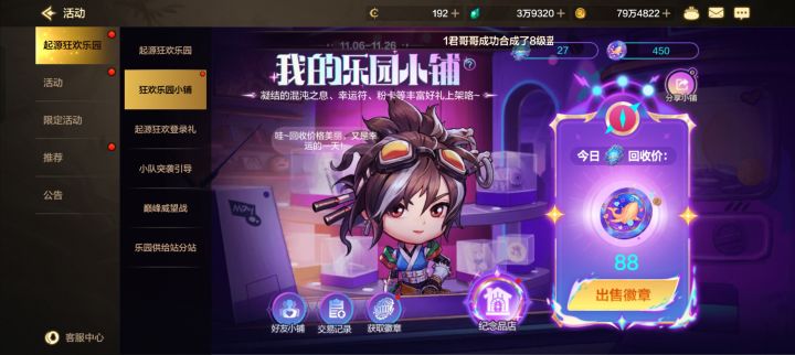 我的小铺码gjZKckVpqS 今日乐园小铺徽章回收价93乐园纪念币,欢迎来串门~