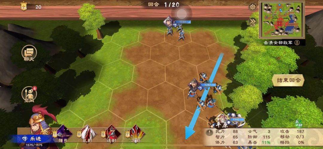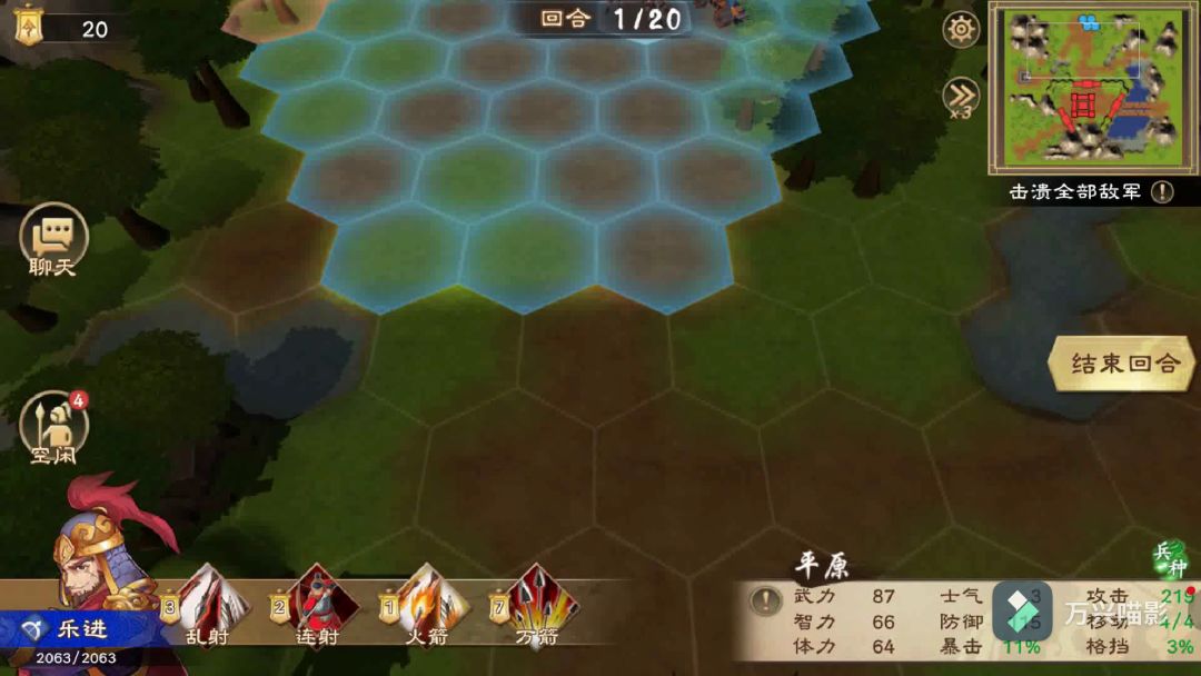 打法特点:1、第二回合后,属于站桩输出,只需要记住前两个回合的站位就行。2、效率稳定变化少,7~11回合5分钟左右一把,李儒3格覆盖了所有小兵,所以小兵中毒并混乱状态下,砍不砍都无所谓。阵容阵容说明:阵容的次序尽量一致文丑:钩人,旋风,双铁戟(没提的随意,下同)李儒:火箭,定身,混乱,中毒高顺:推人,破胆,1速马张世平:定身,降士气,混乱,中毒刘勋:孙子兵法乐进:火箭,乱射,山
