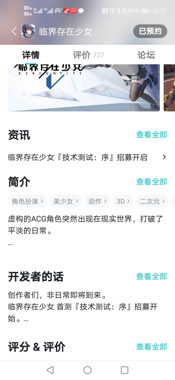 嘛玩意啊,预约了好久,今天看到有测试消息,之前预约的时候还不知道是啥类型的,今天看到有动作标签,超级惊喜,本身我就喜欢动作这类的,连忙到测试那条底下留了个“居然是动作(期待表情)”的话,好家伙,转眼被删,我寻思动作标签不是你们自个打上去的吗,连喜欢动作期待一下你们游戏都被随意删,可想而知今后要是有意见和建议那不是分分钟被禁啊,还是说你们打个动作tag就是为了吸引人然后本身根本和动作不沾边,好抹杀一切痕迹,改天把动作tag下了万事大吉?就凭你们这乱封乱删的态度,我对这游戏的好感直接降为零了,一句话,NB