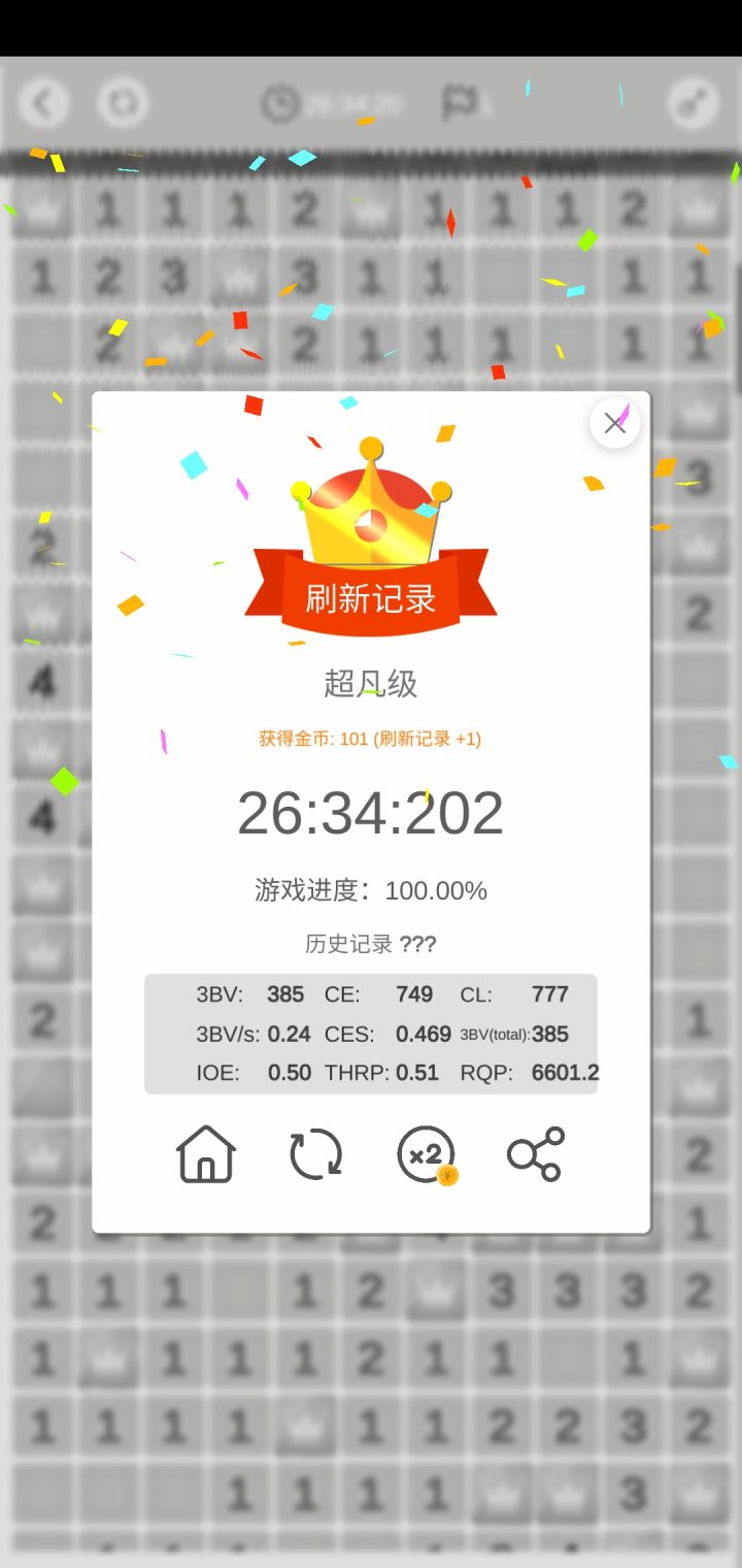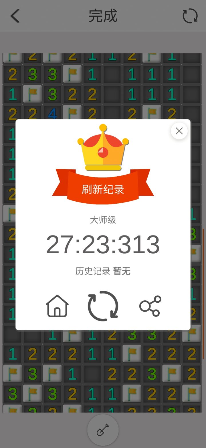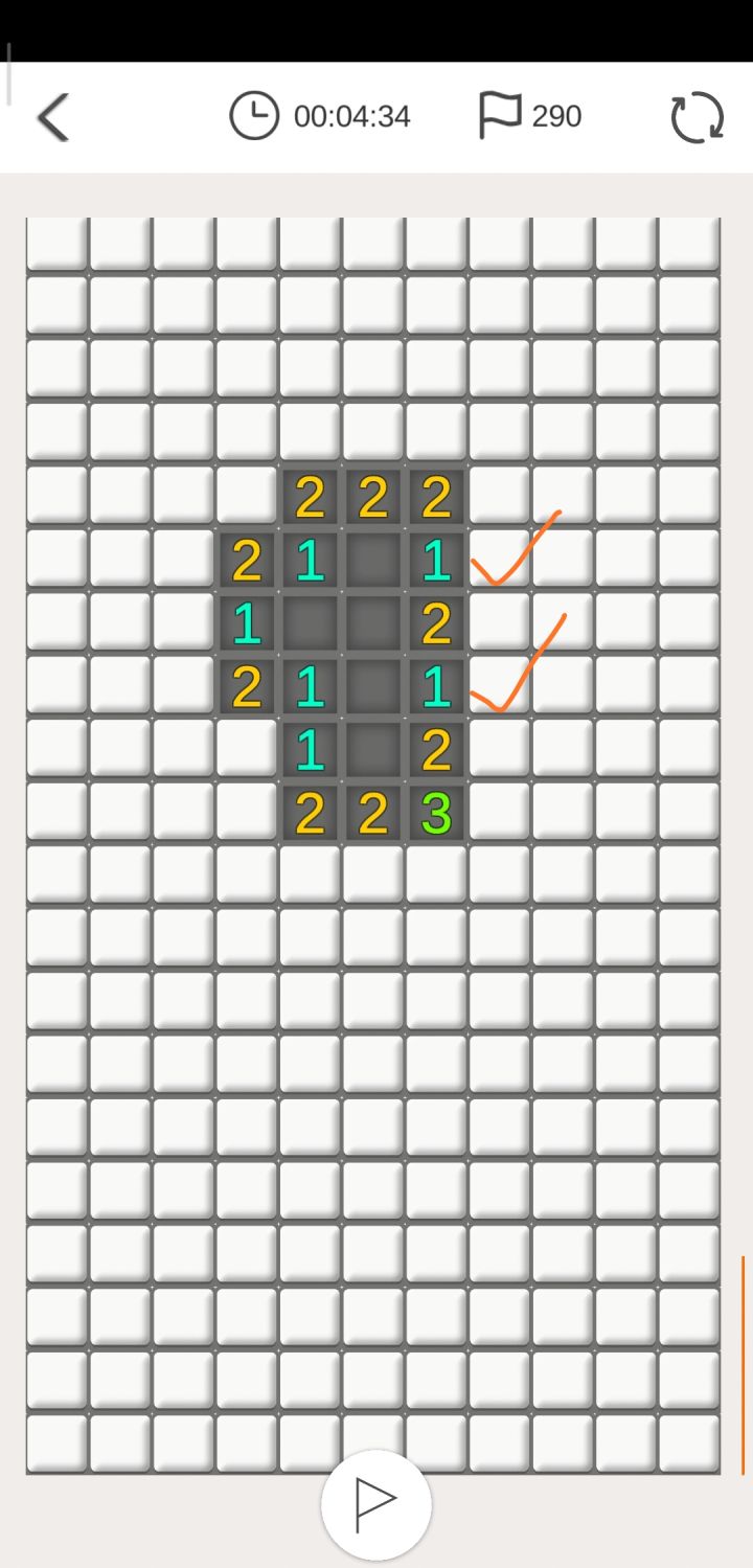 感觉大家扫雷的时候很多人有像我一样先开一片空地,然后还要地图上多点几下,之后会好扫一点,但是吧,超凡难度雷比较密,很容易随机点到,就得重新开始希望可以有一个点个五六次雷不会炸的机制(仅限超凡难度),然后就是允许失误,很多雷是没法探出来的,一局赌好几次雷可真是太难为人了!艰难过大师,正在向超凡奋斗