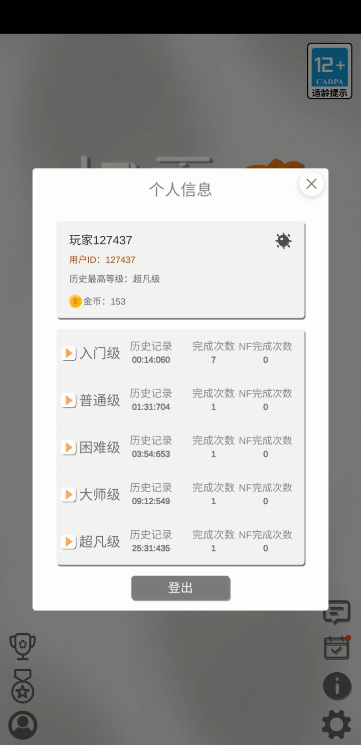 难度一般吧,每个试了下,大师和超凡清到最后会有碰运气的对角选择,我运气还行,一次蒙对,但是这个长按标记挺容易点错变成点击翻开😂