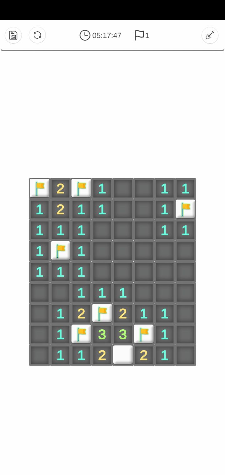 day1 标记旗后,点旗旁边的数字会自动翻开一些安全区噢