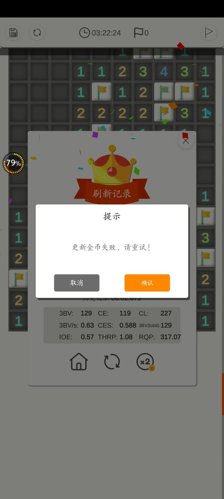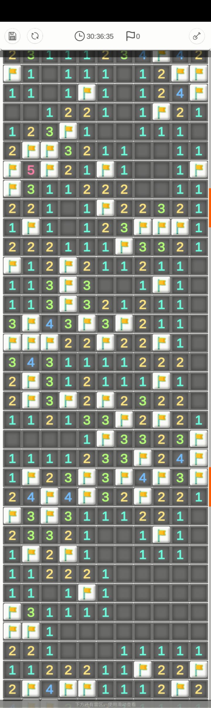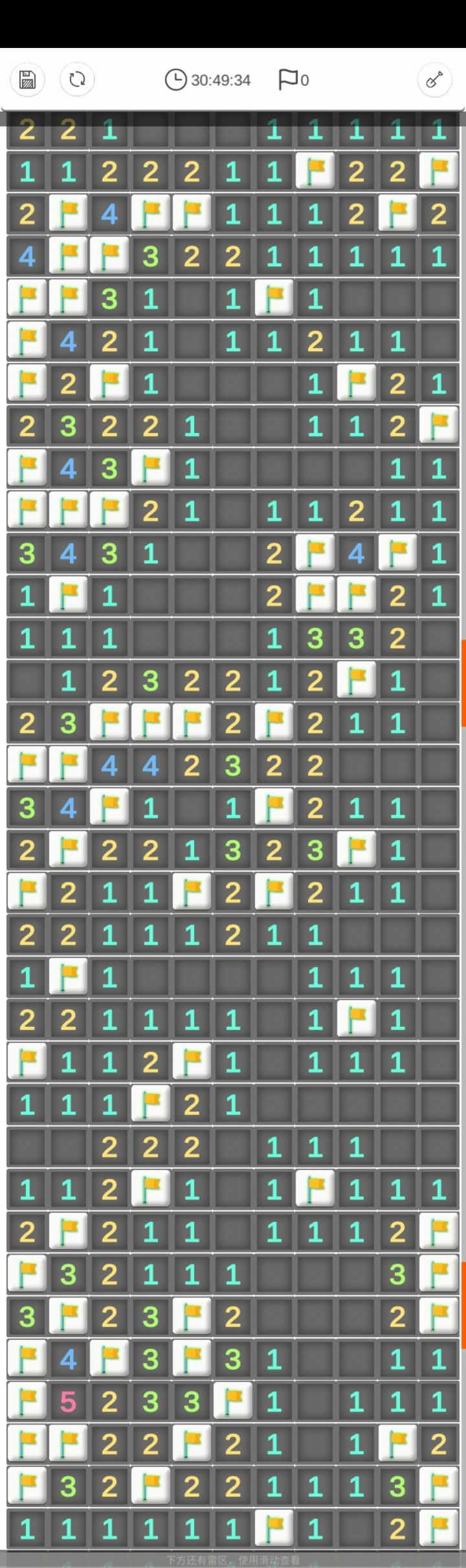 强烈建议插旗标记的格子无法点击,只能长按清除标记。困难开始,格子太小疯狂误触。从策略游戏秒变人品测试仪了,就看谁活得久。