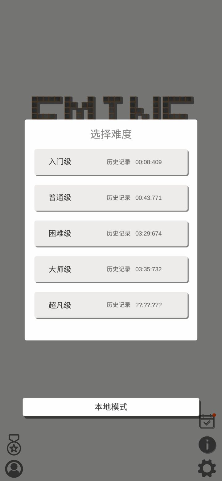 说一下自己的看法(大佬勿喷)看见宣传说还原端游才下的,但是下下来感觉级别和难度没关系,并不会说想端游那样难到没头绪,最多就是二选一碰运气,我也承认自己菜😂,时间比较久,毕竟也很久没玩了,但是体验一般,就是一味地格子增多,炸弹密集度并没有什么变化,基本都是一把过(除了有几次手滑插错了旗),如果可以自己调整炸弹数量感觉会很不错😬