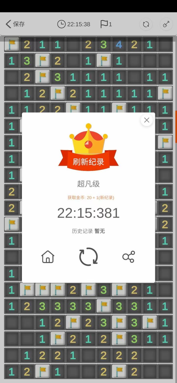 扫雷我下了半年了一直没更新,自己都不知道玩了多少次了,今天好不容易把唯一一次的超凡级记录给破了,想来论坛看看,发现有更新,妙啊我这小手毫不犹豫就更新了。更新完就傻眼了,登进游戏里面啥也没有,皮肤也没了,记录也没了,曾经的辉煌变成了躺在相册和朋友圈的老照片,就,,,,就离谱!