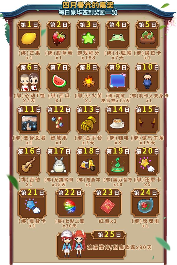 当阳光越来越炽烈,当温度越来越燥热,我们已经站在晚春与初夏的交汇之处!如果要评定一年之中哪一月的阳光最为明媚,我一定会投给四月一票!多次出现在各类诗词歌赋中的它,一定有它独特的美,例如——四月的清风徐来,四月的莺歌燕舞,四月的豪华签到奖励一览!2021年4月豪华签到奖励一览:奖励领取时间:2021年4月豪华签到时间:2021年4月1日-4月30日。豪华签到奖励领取规则:《推理学院》是一款寓
