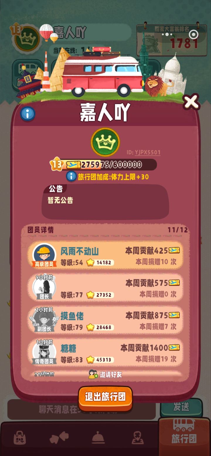 旅行团号:XLLJN501有没有能坚持做任务的小伙伴一起玩啊大概是迫于生计,小伙伴们已经很久没有上线了忍痛请走了3位很久没玩的小伙伴#旅行串串 #旅行串串旅团升级 #旅行串串找团团