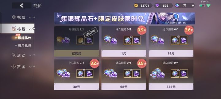 这次购买道具 兑换获取的天工皮肤最低 444 元/个。📌一个天工:兑换所需: 1500 晶石氪金礼包: 328+68+30+18=444 元获得晶石: 1000+300+160+80=1540个┄┅┄┅┄┅┄┅┄┅┄┅┄📌两个天工:兑换所需: 3000 晶石氪金礼包: 328×3=984元获得晶石: 3000个┄┅┄┅┄┅┄┅┄┅┄┅┄📌三个天工 :兑换所需:4500 晶石