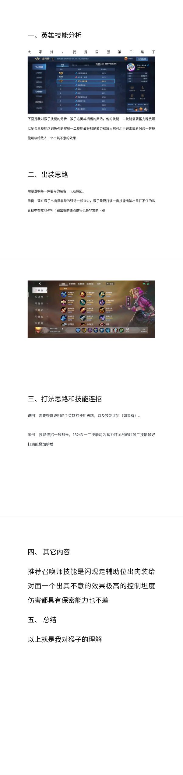 一技能会释放一个小妖,两个小妖身边的圈,如果重叠到一块,就会合成一个大妖 二技能是一个位移,位移的中心点,如果在大妖范围内,就会吸收一部分能量,把大妖变成小妖,并刷新自己的二技能,然后获得一次强化普攻 三技能就是一个打输出的技能 大妖和小妖复制的平a和技能伤害是一样的 三技能,命中敌人的同时,小妖也命中敌人 第二次命中的时候就会产生定身效果,持续两秒 大招就是变身增加最大生命值,攻击范围变短 变身之后的一技能,放到地上会直接变成大妖 变身之后的二技能没什么变化,只是变成了近战 变身之后的三技能只是距离变短 白泽强化普攻和傀儡的普攻都是可以暴击的 所以我会出一个预言 一技能合成和二技能刷新和暴击效果 二技能的护盾最多可以叠加五次 出了一个大地,白泽很扛揍,开启大招直接万血 对了,白泽的平a好像可以破崇高 白泽的平a属于被动,被动属于技能,所以可以破崇高 多放几个小兽,只要有两个三技能打中就可以两秒定身,开大秒人 白泽差不多就这些了 本攻略转载至——清风😘