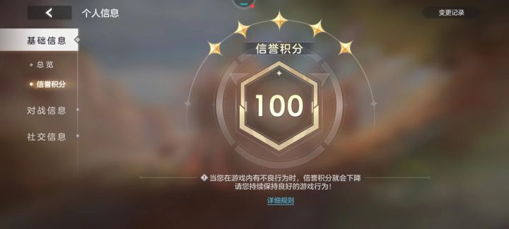 很多守卫者想了解自己的对局记录数据和信誉分的变化现在我们更新了两个功能,快来看看吧~1.对局记录【头像】-【对战信息】-【对局数据】在这里可以直观查看自己的对局数据,出来常见的场次,胜率,还可以查看获得MVP,五杀等关键数据,快向你的好盆友炫耀吧~2.信用分查询【头像】-【基础信息】-【信誉积分】点击详细规则,可以查看信誉积分的说明~点击变【变更记录】可以查看七天内信誉分变更记录~