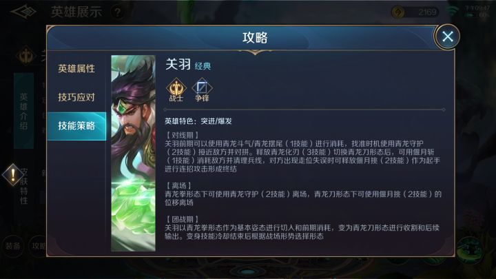 关羽,字云长。民间尊其为“关公”,历代朝廷多有褒封,被奉为“忠义神武灵佑仁勇威显关圣大帝”,崇为“武圣”,与“文圣” 孔子齐名。可惜的是这与曙光的关羽基本没什么关系......虽然是以武圣为原型制作的英雄,但关羽本赛季出场率仅有9.37%,胜率仅有46.19%(倒数第6)。关羽曾经在测试服也辉煌过,当时一个1技能连发四个斗气几乎可以秒杀一群人,只用一技能都能拿三杀五杀,然后——削了、弱了、没