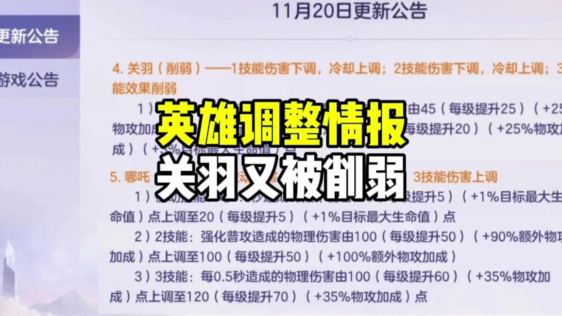 英雄调整情报,关羽削弱哪吒加强#曙光英雄 #曙光群雄召集令 #曙光25S5新赛季 #游戏日常