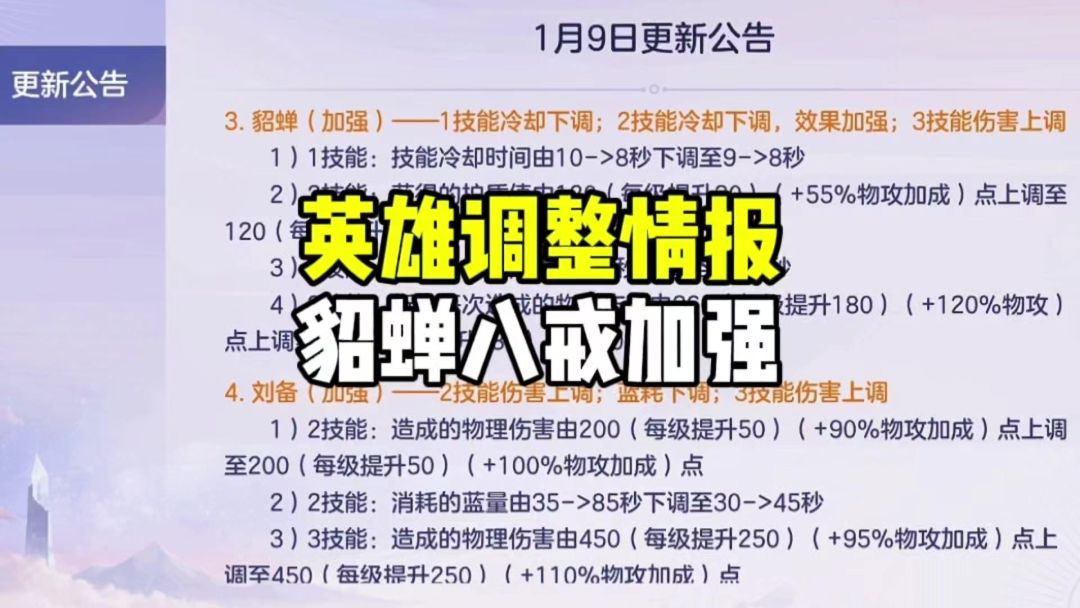 貂蝉猪八戒刘备加强,关羽削弱#曙光英雄 #曙光群雄召集令 #英雄调整 #S1新赛季攻略