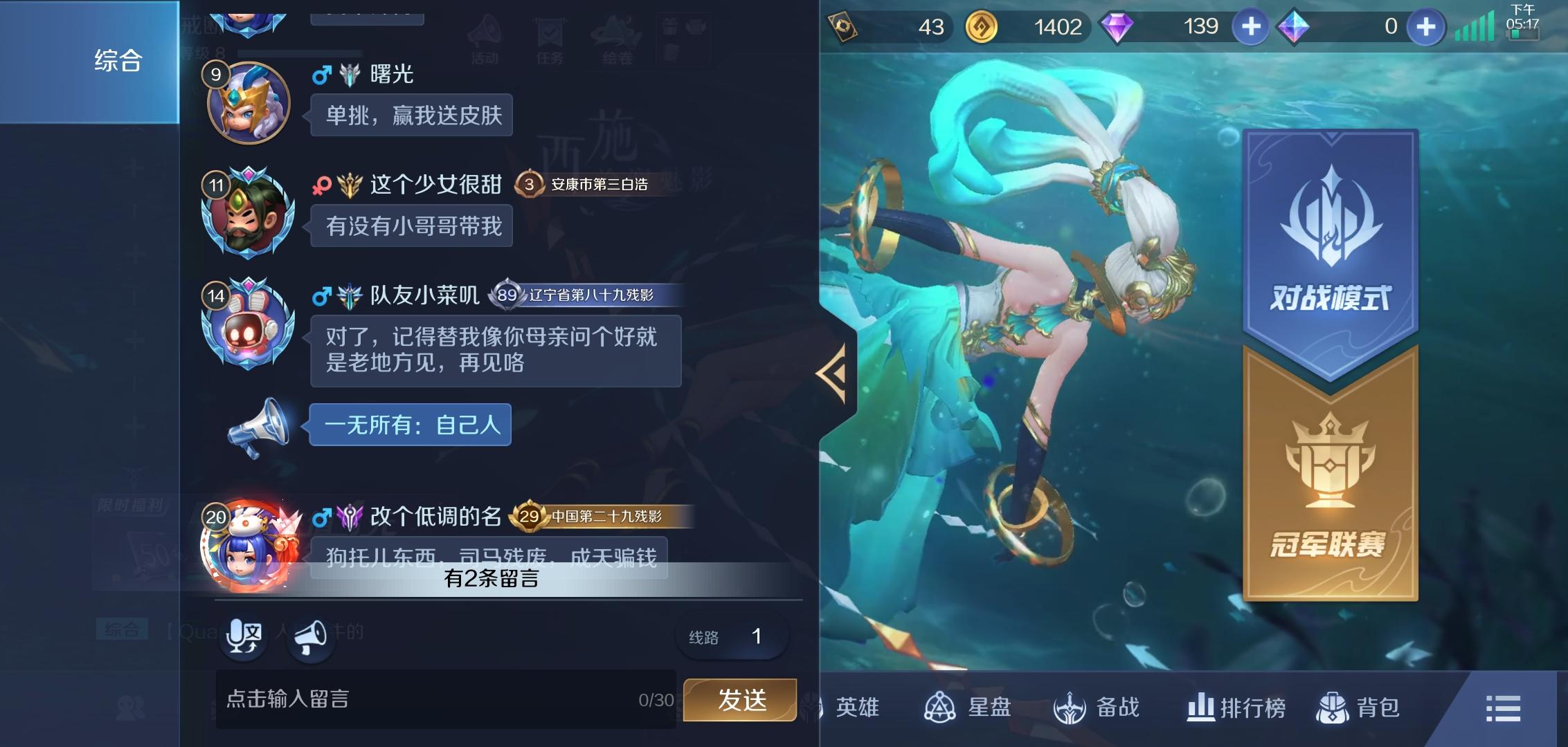 今天毫无征兆没法打比赛了,系统通知我要到下周三才能正常排位,玩家正常评论游戏还带打击报复的?官方版主出来解释下这个神秘人队友是咋回事?两次游戏就有一局匹配两个这样的队友开局送人头6分钟在泉水不动了让玩家毫无游戏体验。玩家不想继续浪费时间就被恶意禁止比赛封号。你有不优化游戏体验,让玩家给官方背锅迟早暴毙。