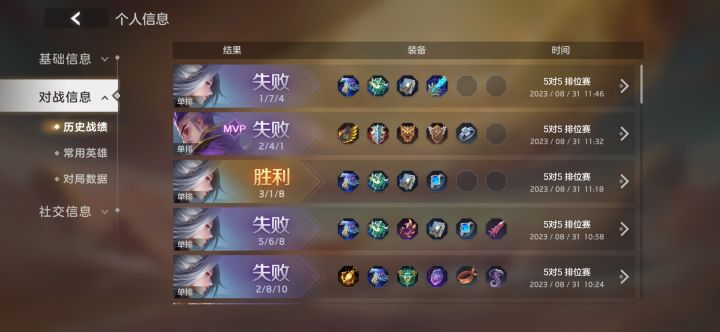 连着的最近10场,就这样的战绩。。。演员,挂机,退游,拿李靖当无敌一打五的,全局无任何作为的,除了退游的举报扣分,其他一个都没扣过。。。真的实在恶心死了,这扣分系统就是个摆设。。。从骑士1掉到骑士2 一周我愣是没上去,现在直接给我干到骑士3了。。。请问 我还有什么动力继续下去吗。。。。