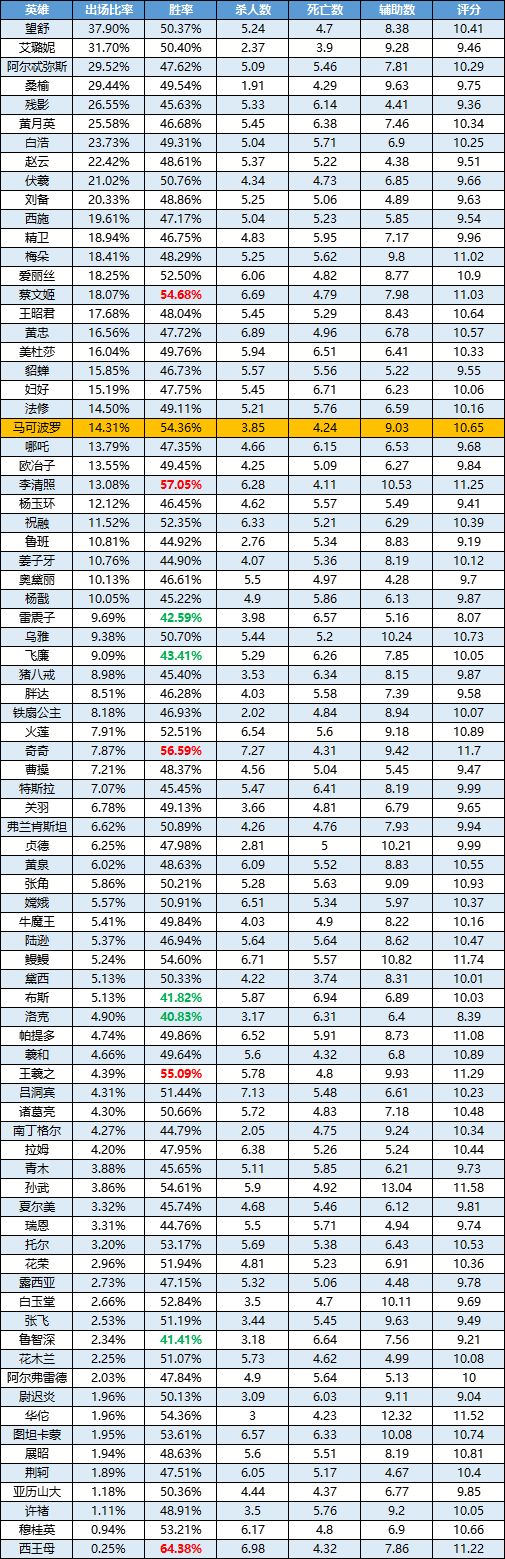 一周英雄榜单丨蔡文姬重做后表现优秀!马可波罗依然强势