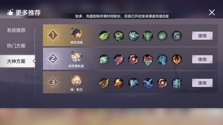 人机局,如果拿花荣刷钱就行了,过渡到一件装备就拿红控龙边带推进,这个打法仅限人机局和殿堂以下,殿堂以上一个中单诸葛就很难受了,还不如就走射手路去 星盘:蓝色绿色正常物攻物穿吸血,紫色脱战加速,受20以上伤害免伤,吸血,金色猎隼 建议:赛季初赛季末殿堂以下直接单排打,没遇到打小号的基本百分百胜率,殿堂以上效果不突出,最好组排,可以特别用来针对人机,原因:花荣秒线,单刷龙,这些很容易压制人机,只要经济差没有太大有边带空间