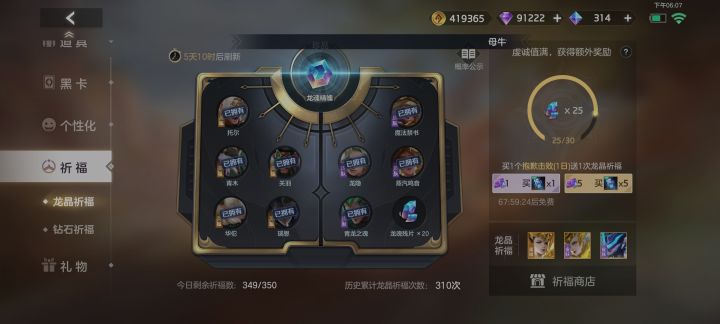 龙晶祈福,白嫖310次终于抽到了!换西王母吗
