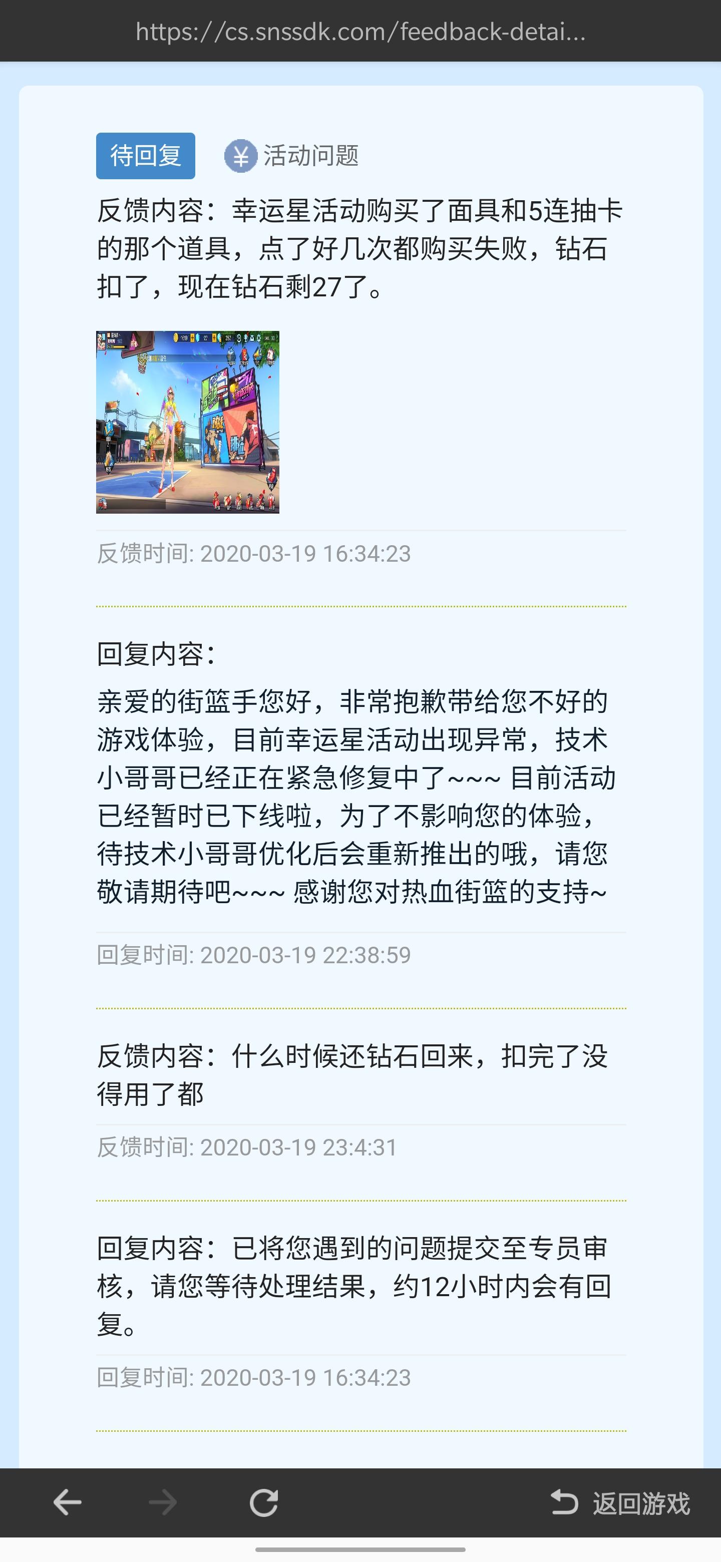 幸运星活动出问题到现在我的钻石还没返还回来?