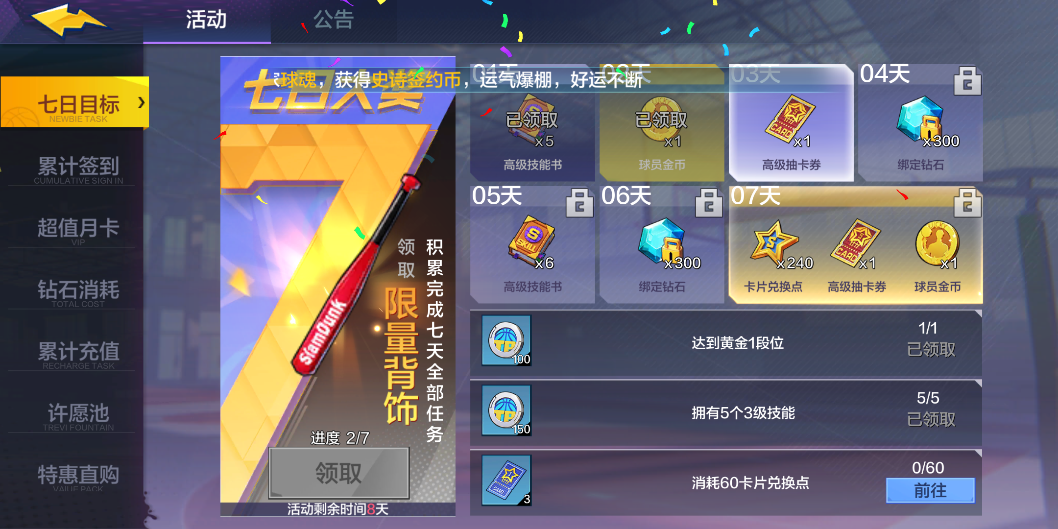 科比那个活动能多多延长一下吗,哪怕一天也行,正好开服那天我做手术没办法玩落下了。活动每天都必须做太难受了。