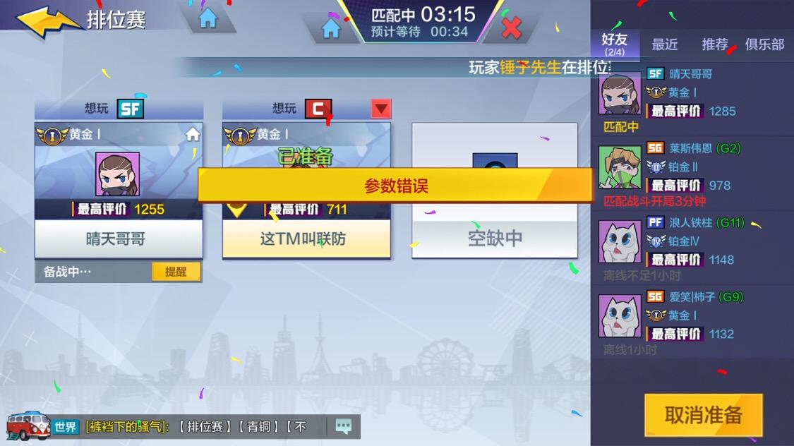 这个游戏匹配可以进去排位根本进不去打排位一匹配就参数错误希望能解决一下