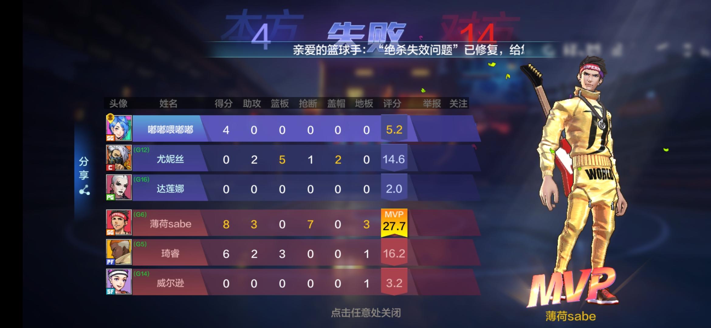 等了一个星期,玩了几个小时,我想说说人机人机人机,人机就人机吧,你这3v3排出来4个人机,两个玩家对着扣,有意思吗,一局比赛打了5.6个加时赛,有意思吗。还有我的最后时刻绝杀失效(已经修复了好像),你对得起我吗!人物你标个评分干啥,谁不知道评分越高越好,高端局是不是都是评分500人物?在一个力度条,连一个投篮力度条都没有我也是醉了,玩什么,空位看脸吗,卡牌系统我就懒得吐槽了。手感,技巧,画面,氪