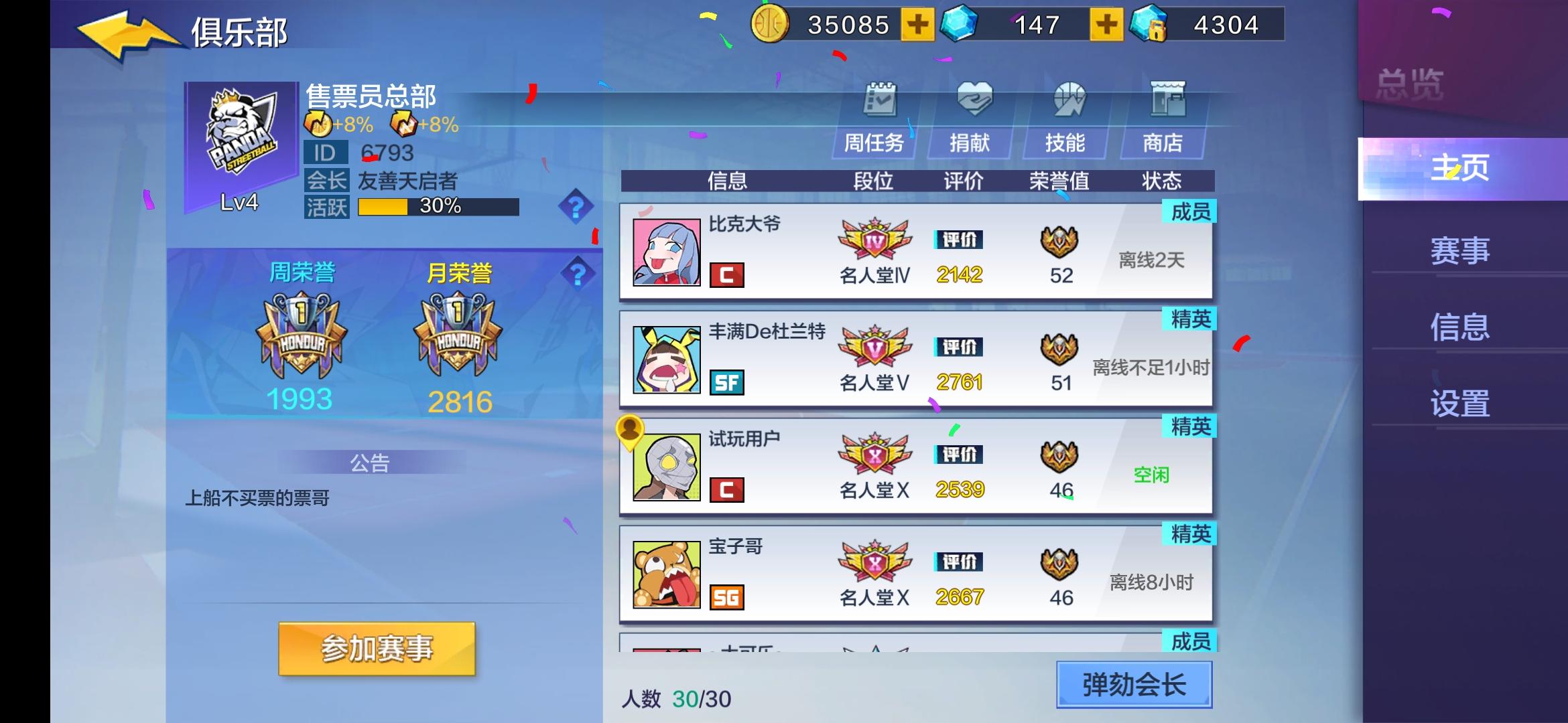 糖糖来看看,服务器G11,俱乐部ID6793,会长3天没上线被弹劾,弹劾成功后不是周活跃最高的玩家成会长吗?你看一下日志显示的是一名叫做“友善天启者”的玩家成为了会长,但是他3月19日才进俱乐部,活跃度才排12,怎么轮到他当会长了?希望官方赶紧纠正错误