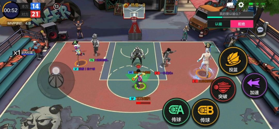 合理的打,传导球尽量多空位投篮的,打不过莽的,空位投篮没有大前的扣篮准啊,就算大前顶着两个人强扣,感觉都比空位投篮准。中投干扰率加上干扰率接近30,对面pf似乎完全没影响,自己站面前照样进,现在好像只要不点盖帽对投篮影响非常小了,崇尚的就是进攻,防守远远小于进攻。投篮被盖帽了,旁边的C可以直接补篮。以前养成的习惯改不了了,现在改版了,无法适应,想换个职业玩,可惜500人物太难了,养起来累死,PF肯