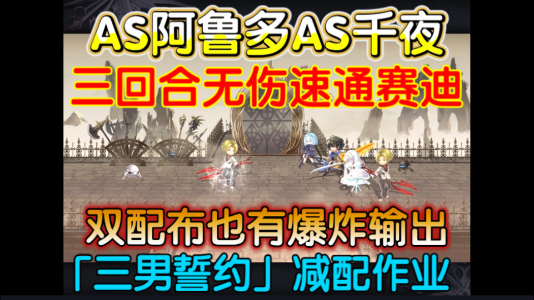 本周专武誓约三个男性角色条件不难,减配的男主角阿鲁多一个人就能轻松通关,莉娜里亚,as千夜,赛迪三人辅助给力,还做到了无伤3T,还要上班,就先上传个常规低要求的作业,还有花式另类打法等剪辑好了再上传吧。