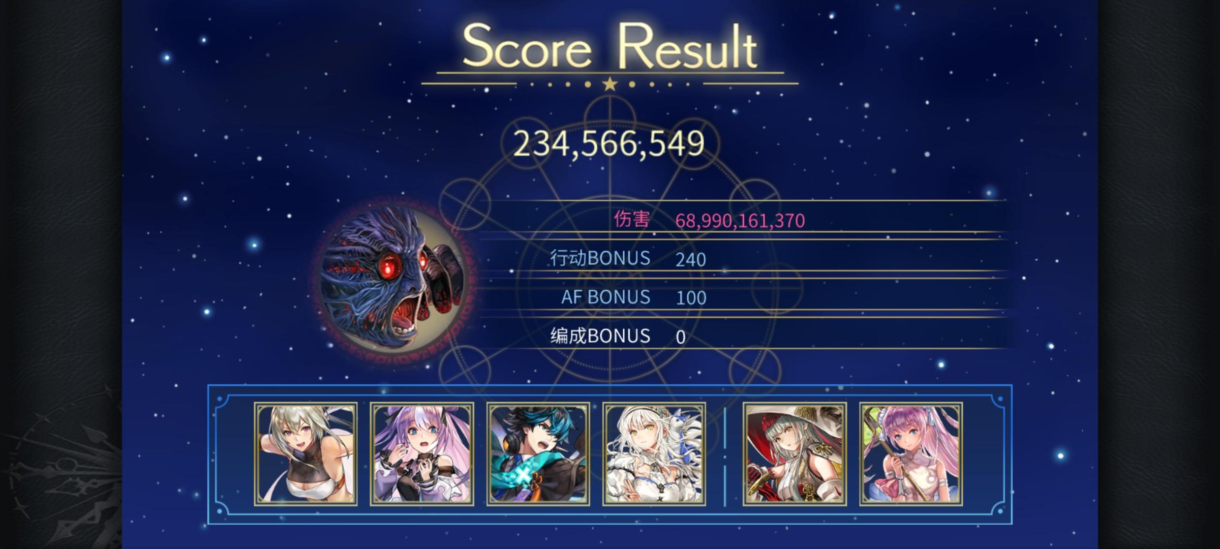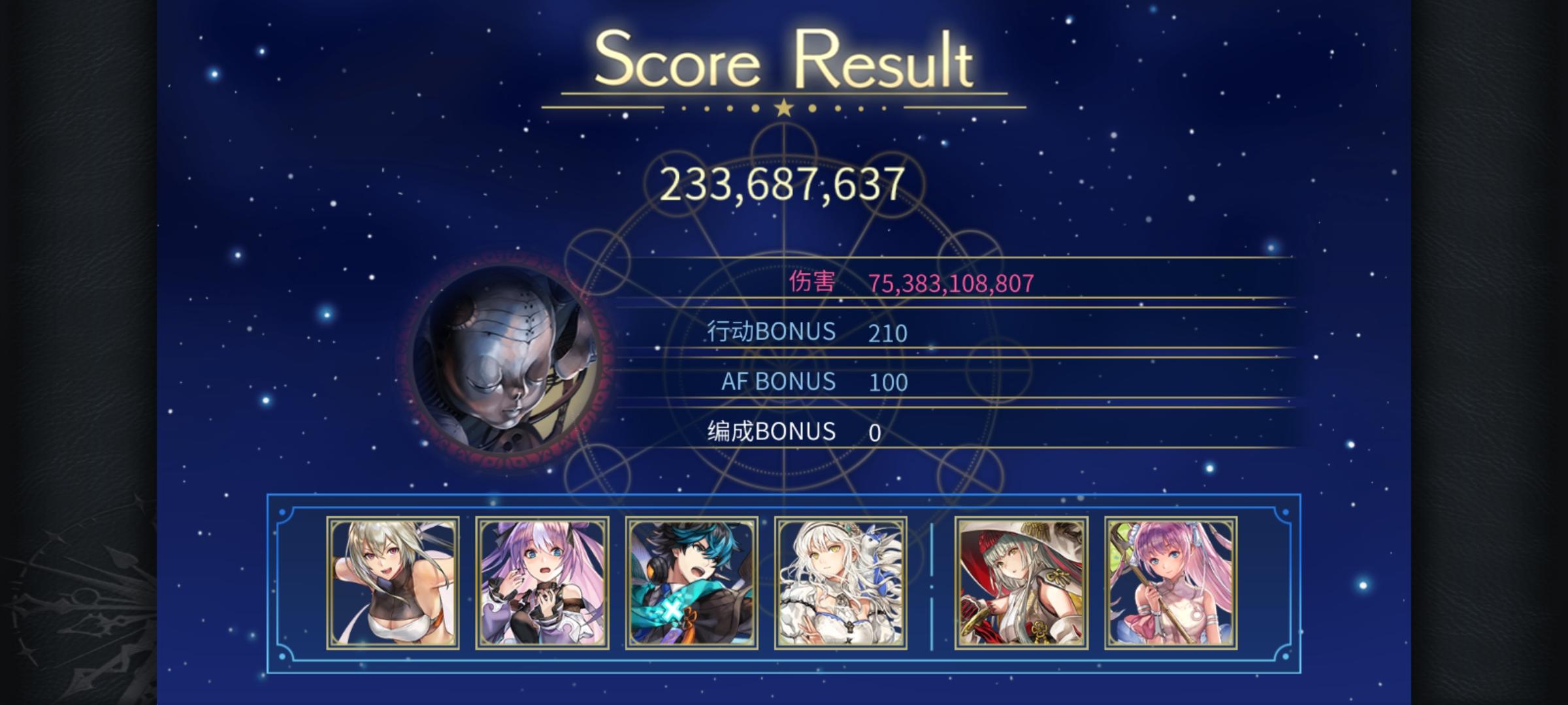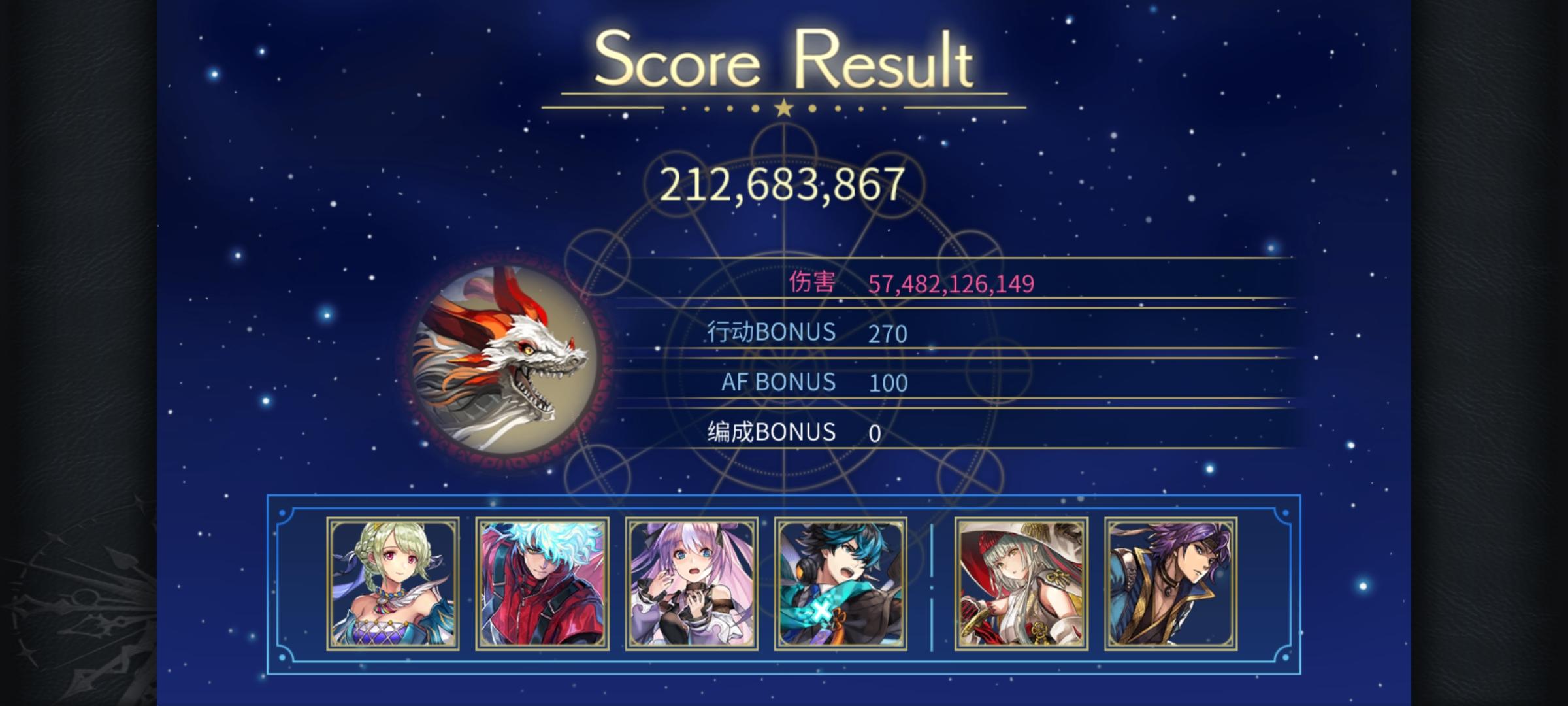 打两次af两次星爆(可见上一个视频),前卫至少有一个个性符合应该还有一些可以通用(比如巴雷斯,合成鬼龙),给其他队伍留个纪录吧-------------------------------------------更新:龙神的使者(有一定的配置需求和手法需求,可能需要魔力较高的谜晶武器,我带了智力勋章)、时层扭曲巨魔奇诺和天照之书可能不用ac明芳的雷队凑全个性会好一点
