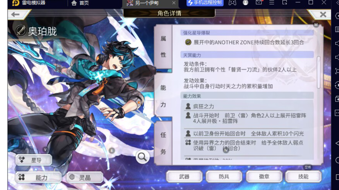 奥珀珑:天冥:天武器:刀个性:刀,雷,爱猫,kms,普贤一刀流,面具等。定位:雷队输出!打boss合集!(弱点看破好用)!外史隐王:边缘灾祸!(2t)外史隐王:Sd-148 1t!枢机之影(大头):1t!(那么星爆大招到底算不算一个回合,求解答!)