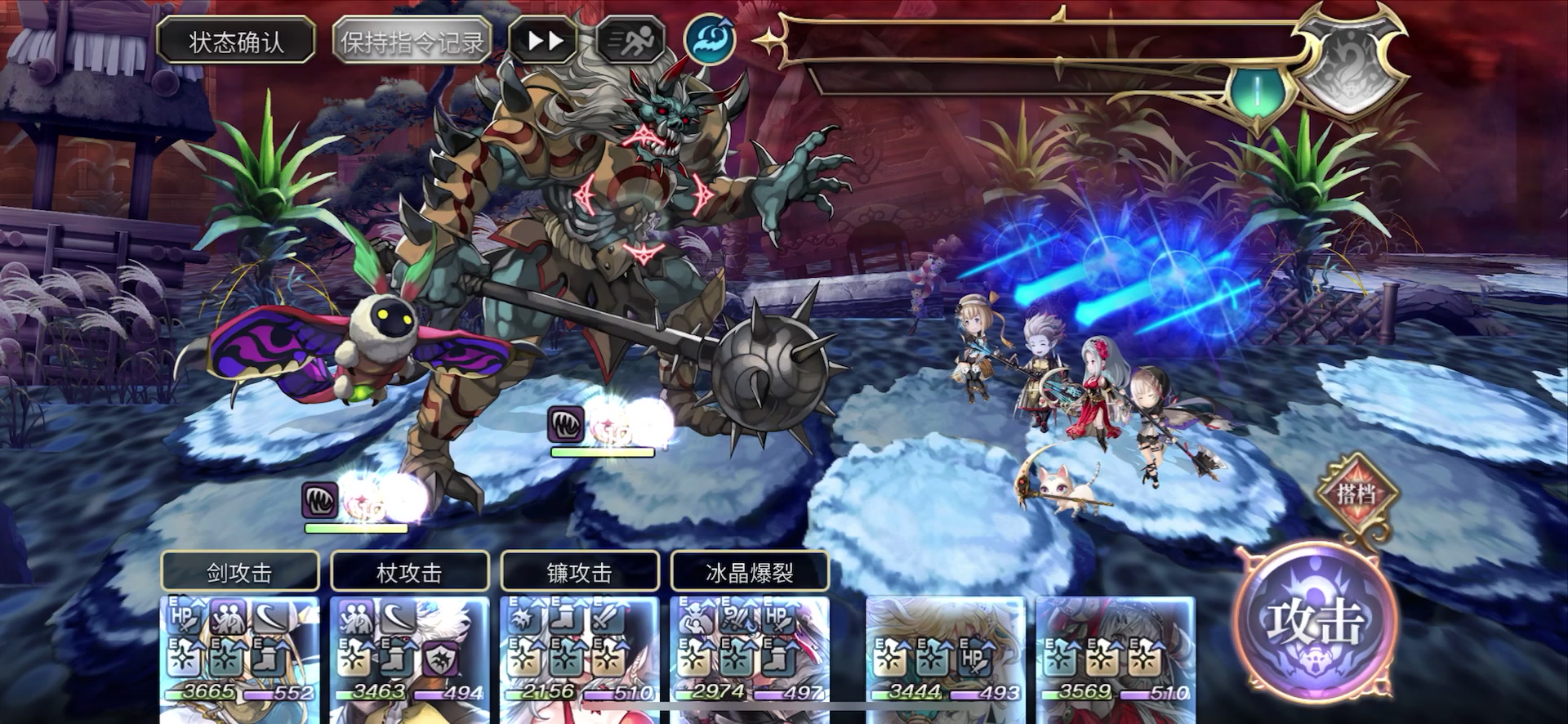 经过几天的研究,总算把暴风王打过了,目前我的阵容不算最优,但是能勉强打过,因此跟大家分享一下首先,阵容:·主C-电锯妹:武器亚空,虹之手环,狂战士徽章(40力,-10%物理耐性),灵晶-三痛,狙击、蔷薇、天冥力量UP·辅助-AS猫可可(上位替代应该是AS伊法),带开火阵灵晶, 另一个是AC杜伊(上位替代应该是幼华)·盾-AS火剑 和 普莱(理论上DPS够的话只需要一个)·宠物-抽电锯妹送