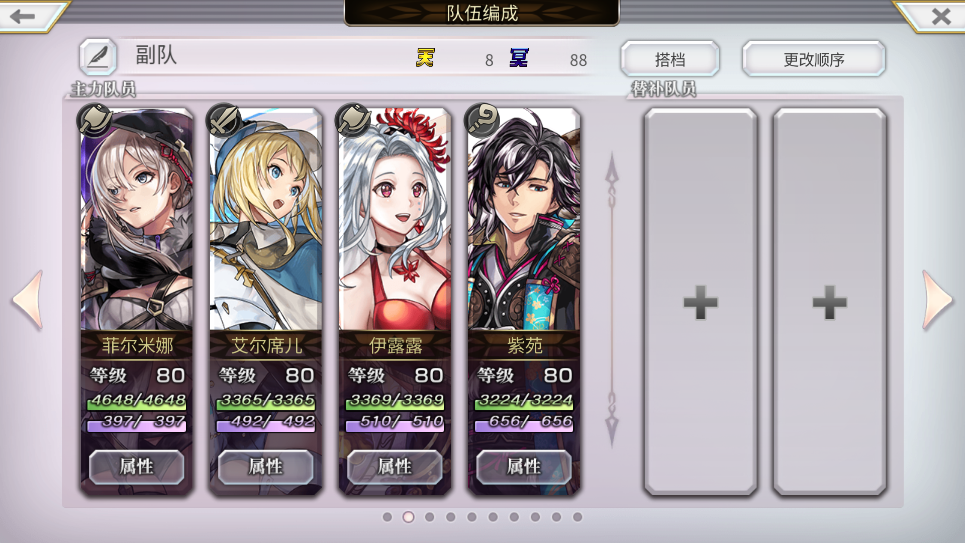 普蕾米娅AS:地/天/弓/地队追击输出手/防护/辅助书籍名称:新娘女仆的异节🌟VC:为了守护这段温馨的时光!♦️(常规):给予全体敌人地属性突攻击(大)+地属性耐性40%DOWN(3回合)♦️(强化):给予全体敌人地属性突攻击(特大)+地属性耐性50%DOWN(3回合) 🌟被动:♦️以前卫身份结束回合时,自身根据前卫的『地』角色人数累计天箭 ♦️以前卫身份结束回合时,根据天箭进