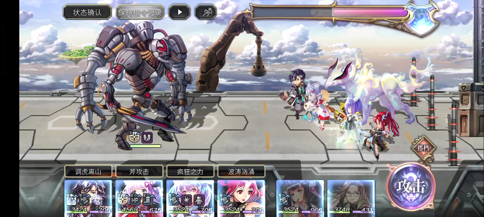 BOSS 3条血,只要在每一条血的2回合里打死就不会触发力速DEBUFF和石化,大力出奇迹就行了,装备在最后