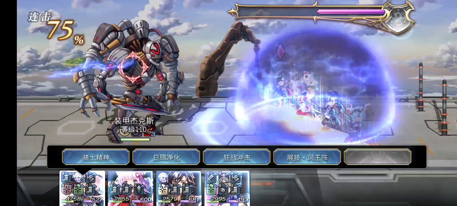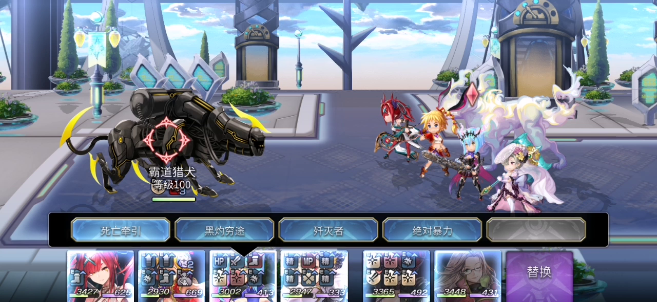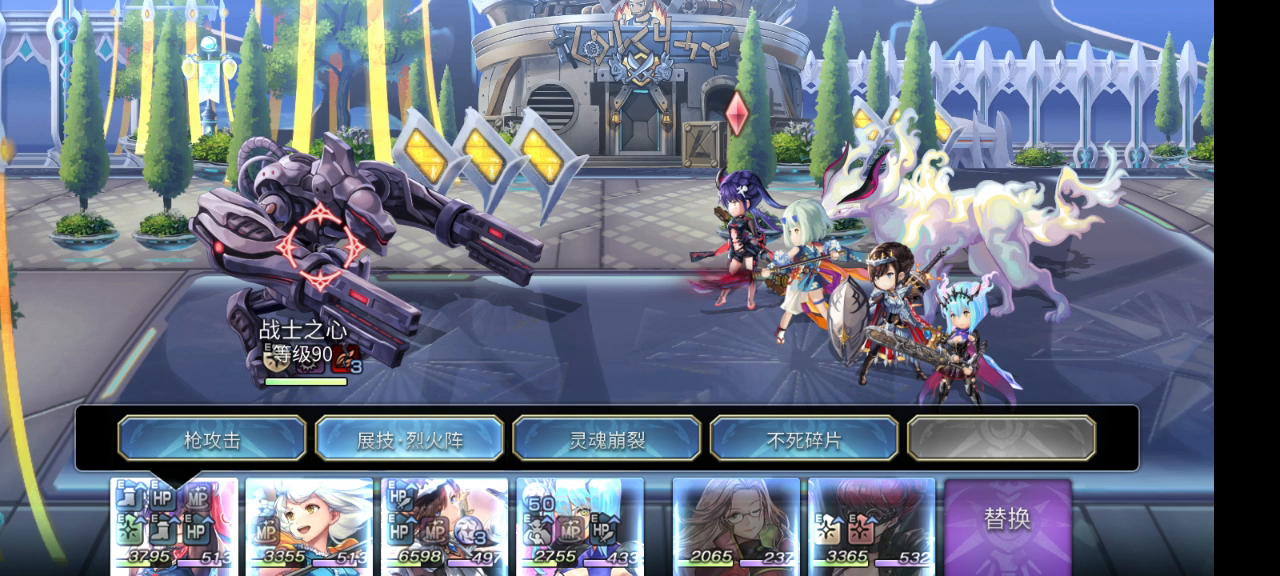 本战需要注意的是如果触发了己方任意hp<20%,boss在2t的行动会变成先制,电锯妹没先制手段的话可能会被boss踹飞第一次打的时候火剑af最后开了守护,导致触发了这个光环,2t被踹飞,很尴尬。电锯妹带三痛+狙击,蔷薇,希望剑和+10射干球