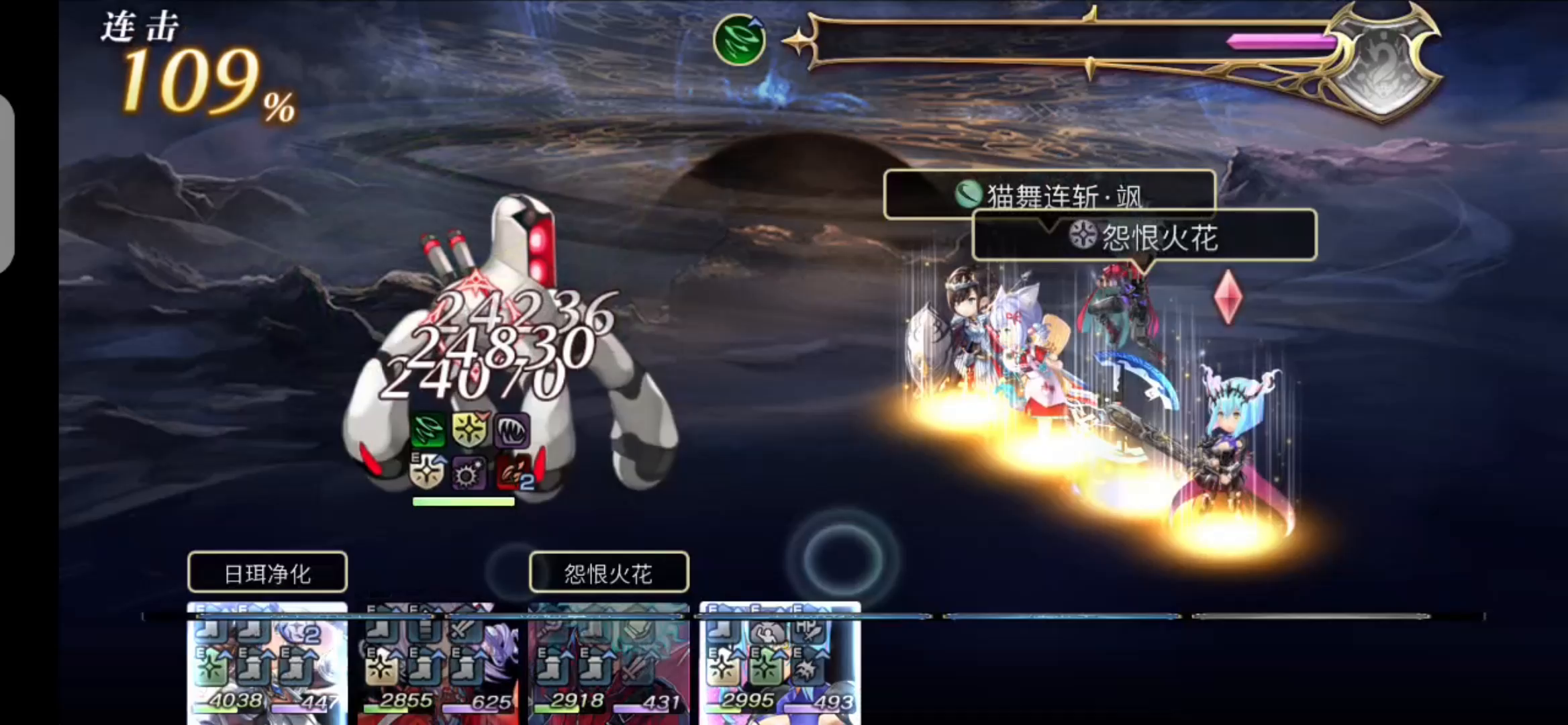 换阵咏唱LV1 - 【我上咯!】赋予我方全体智慧上升10%(1回合)+速度上升10%(1回合)LV2 - 【加油!我会支持你的!】赋予我方全体智慧上升20%(1回合)+速度上升20%(1回合)LV3 - 【现在该我加油了!】赋予我方全体智慧上升30%(1回合)+速度上升30%(1回合)固定技能【心灵狙击】魔法值:18给予敌方单体突攻击(小) +力量下降15% (3回合)【心灵突