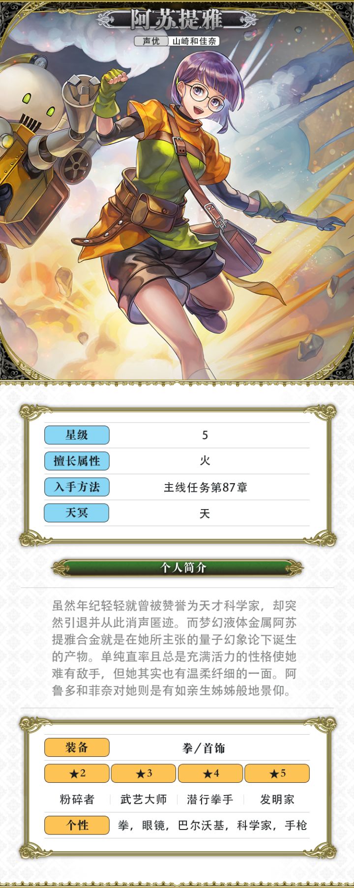 早上氵一贴 前有es奈岐开辟水法新天地,后有泰坦妹平地爆炸输出 |。・㉨・)っ♡ 国际服实装:2.11.5(未来外典第五话) 2022年4月7日职业书掉落:魔兽城ㅤ天冥类型:天↓面板值(无天冥加成) VC:我方全体物理耐性30%UP + 火属性耐性30%UP(1回合)VC(真证):我方全体物理耐性30%UP + 火属性耐性30%UP(2回合) 被动:•